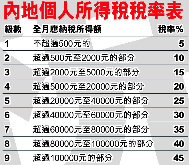 內地個人所得稅稅率表 (圖)