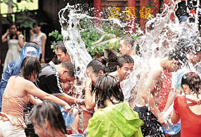 9日,廣西柳州市雀山公園舉辦「潑水交友節」活動,數百名單身青年參加潑水狂歡,在快樂的「相親」活動中加深彼此了解。 新華社