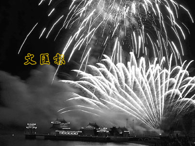 9月8日晚,首屆中國山海關國際煙花大賽開幕。來自6個不同國家和地區的煙花燃放隊伍輪流獻技。中新社傳真