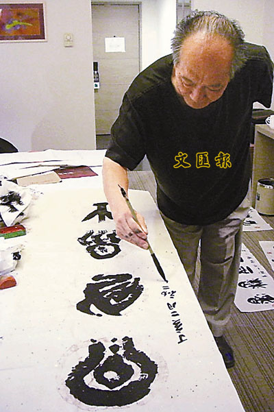 ■這位人稱「龍」先生的「怪夫子」,難得當眾揮毫。