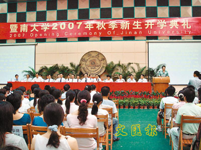 ■暨南大學舉行2007年秋季開學典禮,迎接來自內地、港澳台地區以及美國、英國等各地學生。