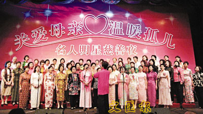■香港各界婦女代表盛裝出席,為「關愛母親 溫暖孤兒─名人明星慈善夜」高歌一曲《萬水千山總是情》。 本報記者鄭群 攝