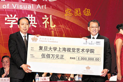 【本報訊】英皇集團主席楊受成博士銳意推動發展內地表演藝術,捐出人民幣500萬元予復旦大學上海視覺藝術學院,另斥資人民幣2000萬元成為學院股東之一。