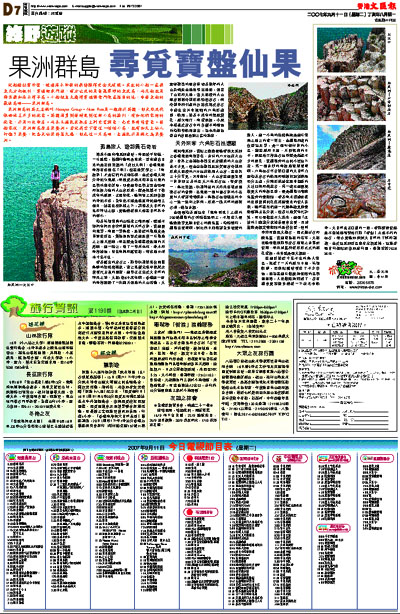 在這群接近寸草不生的無人荒島,抵受了一天的風吹日曬、崎嶇跋涉,回到船艙發現多了不少食物,因為在這片像燒烤架般的島嶼團團轉,人也像給烤熟透了。若有機會更要親身感受一下秋冬季節時,大自然真正狂暴的一面,看那駭浪驚濤毫不留情地衝擊拍打那「看似」永垂不朽的柱石,想必更能加深對大自然的了解和認識。由於往果洲群島沒有定期渡輪,往遊者需自行租船或參加旅行團,查詢電話2836 5878。