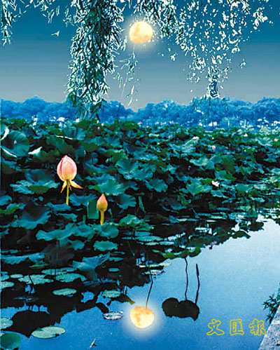 說起璨若群星的詠月的佳品,最令我夢繞魂牽的,當數唐宋八大家之一的大文豪蘇東坡的名篇。一生命運多舛的蘇軾寫了不少中秋詩,他的《中秋月》是:「暮雲收盡溢清寒,銀漢無聲轉玉盤。此生此夜不長好,明月明年何處看。」是對一輪「玉盤」的嚮往與鍾愛,更是這樣對生命的感歎、對前途的無奈!他還有「月白風清,如此良夜何」、「可惜一溪明月,莫教踏破瓊瑤」等詠月佳句,大都情景交融蕩氣迴腸。而最最令人百讀不厭扼腕讚歎者,還是那首名揚四海的詞《水調歌頭.中秋》.中國人恐怕個個都會背誦這首詞:「明月幾時有,把酒問青天,不知天上宮闕,今昔是何年?我欲乘風歸去,又恐瓊樓玉宇,高處不勝寒。起舞弄清影,何似在人間。轉朱閣,低綺戶,照無眠,不應有恨,何事常向別時圓。人有悲歡離合,月有陰晴圓缺,此事古難全。但願人長久,千里共嬋娟。」