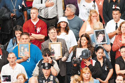 2001年9月11日,恐怖分子騎劫兩架飛機撞向紐約世貿雙塔樓,導致近3千人喪生。昨天世界各地都有紀念儀式,悼念死難者。反而在美國,紀念儀式不如往年般大張旗鼓,美國總統布什亦未有發表講話,僅在白宮參加了默哀儀式。另外,由於正在施工,悼念儀式首次未在世貿遺址舉行。