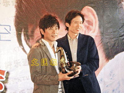 ■伍思凱獲贈陶藝色士風。何靈芝 攝