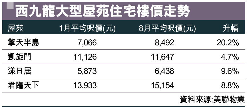 西九龍大型屋苑住宅樓價走勢 (圖)