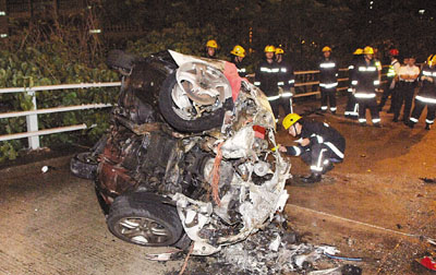 ■掃把佬撞翻著火焚毀,3名乘客被困車內燒焦。
