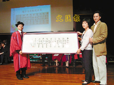 ■在教院的開學禮上,張雲的後人向教院送上張雲支持教院正名的字畫。本報記者羅賀琪 攝