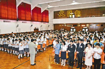 ■教育局昨在嶺南衡怡紀念中學舉行「我的行動承諾——健康生活從和諧家庭開始」承諾日2007啟動禮,鼓勵全港學生,承諾於新學年多加關愛家人,積極踐行孝道,共創和諧家庭。教育局首席助理秘書長陳嘉琪,聯同中文大學醫學院健康教育及促進健康中心主任及課程發展議會委員李大拔與該校師生分享健康生活及和諧家庭的訊息。近千出席者更一起宣讀承諾宣言和簽署承諾書,以示在新學年將承諾付諸行動。