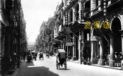 此圖約攝於1925年,接近皇后戲院的一段皇后大道中,為香港最繁盛的大道。當時有一種說法,在這一帶可「檢閱」到最高貴的美女。