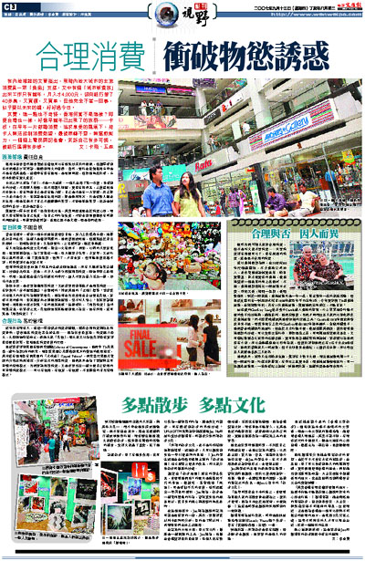 最近筆者得知英國有個研究組織Cultures of Consumption,他們拿了5萬英鎊,進行為期5年的研究,項目從英國公共服務到東非的藥物的使用情況,其中就有個項目有關英國的「水政治」(Liquid Politics),研究當代英國水資源的分布及消耗情況,分析出水的理性消費。他們表示是為了要歸納出可持續的管理模式。我們要講理性消費,又是否要找出一種方便自己管理的可持續消費模式—可以有錢用,有錢買,有錢還,不會崩潰的自我管理模式?
