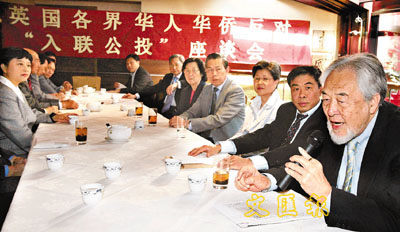 ■英國各界華人華僑代表11日在倫敦舉行座談會,強烈譴責台灣當局推動「入聯公投」。新華社