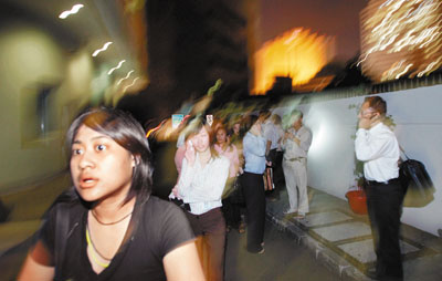 ■印尼發生強烈地震,商業大廈的職員紛紛恐慌疏散。美聯社