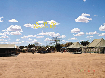 ■藍天白雲黃土地,承接馬國油田勘探開發工程的中石油東方地球物理公司在馬國油田現場安營紮寨。