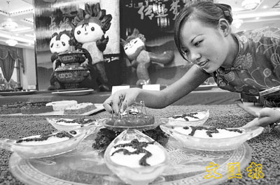 ■14日,安徽淮南市啟動豆腐美食文化周活動。其中,以奧運為主題製作的豆腐菜餚尤其引人注目。新華社