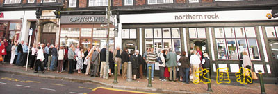 大批Northern Rock存戶在消息傳出後趕到銀行取回存款,各分行出現長長的人龍,銀行網站交通擠塞。一名客戶說︰「我把存款轉至其他銀行,你看到報紙的標題寫著『Northern Rock,資金告急』,如果你有錢在那,你會怎樣做?」 ■路透社/綜合外電消息