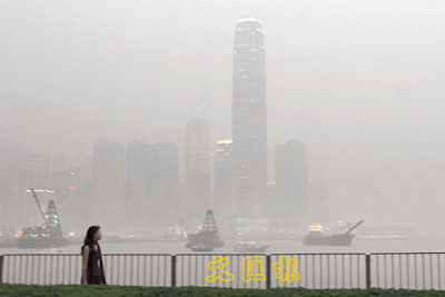 本港昨日天空一片灰濛濛,不少市民走在街上要掩鼻而行。天文台高級科學主任吳炳榮指出,昨日有一股大陸反氣旋影響華南地區,雖然為香港帶來天晴的天氣,但卻有煙霞。他解釋空氣污染是因風勢較微,空氣中的微粒較難吹散。由於風勢微弱,他預計本港未來數天仍然會有煙霞。