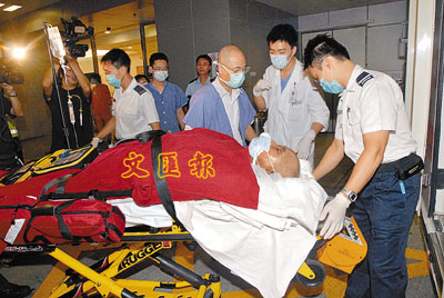 自焚命危的癡情漢姓杜(49歲),胸、腹共有7成皮膚燒傷,部分表皮更燒焦發黑,送院時已陷於半昏迷,經救治後目前情況仍告危殆。一度撲火救男友的女子姓郭(38歲)。