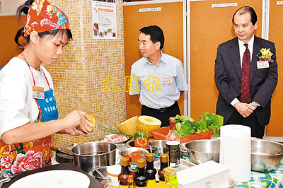 ■工聯會舉行省港職工技能匯演,勞工局局長張建宗出席並欣賞學員的烹飪技巧。本報記者李志樑 攝