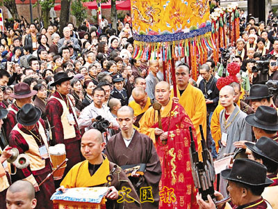 ■祝聖寺宏盛方丈(手執如意者)主持升座儀式。