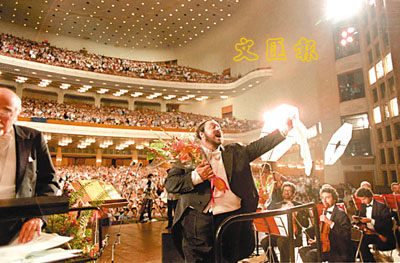 ■巴伐洛堤在北京人民大會堂向熱情的中國觀眾高呼:「我還要來中國!」新華社照片