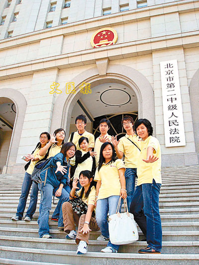 ■聆聽過涉外案件,學員在北京市第二中級人民法院前留影。