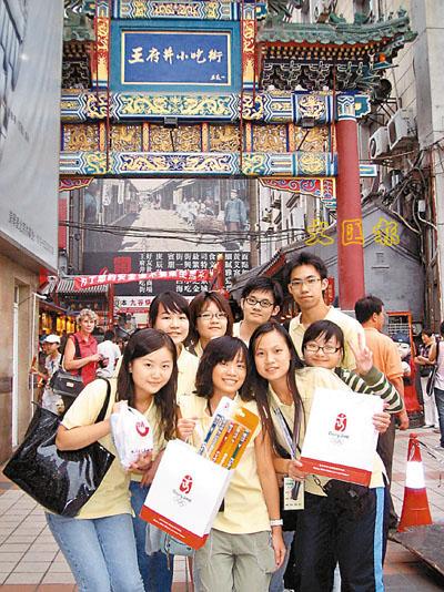 ■在聞名已久的北京王府井小吃街大快朵頤,學員一臉興奮。