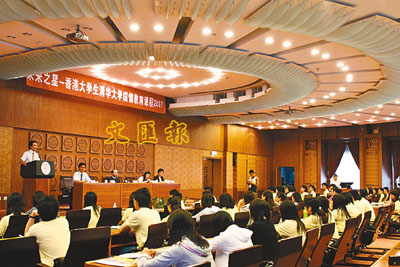 ■學員在清華大學著名的主樓前廳進行隆重的開班儀式。據稱美國前總統克林頓曾在此作過演講。