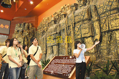 ■學員遊覽抗日戰爭紀念館,認真聽講解。