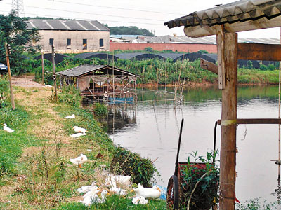 ■思賢村鴨場仍見鴨隻在塘邊嬉戲。