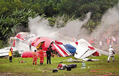 ■失事客機斷成兩截,墜毀在布吉機場跑道附近。美聯社