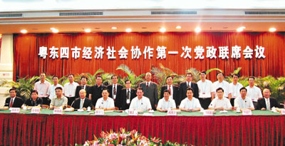 汕頭市市委書記黃志光、市長蔡宗澤,汕尾市市委書記戎鐵文、市長王蒙徽,潮州市市委書記駱文智、市長湯錫坤,揭陽市市委書記萬慶良、市長陳弘平率4市有關部門領導出席,就4市經濟社會合作的前景進行務實交流。大會由東道主汕頭市委書記黃志光主持,4市的委書記、市長先後就4市區域結盟合作表態,並對前景充滿信心。