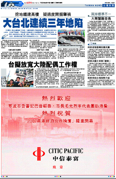 【本報訊】綜合台灣媒體17日消息:台灣經濟部水利署監測發現,地層穩定20幾年的台北盆地,又出現下陷趨勢。下陷區集中在幾條施工中的捷運線附近和超高大樓及周邊,分佈的行政區包括台北縣三重、蘆洲、新莊和台北市中山區,地下水位下降最深達十餘米。蘆洲鄉的地層下陷平均速率達每年2.4公分,下陷量居冠。