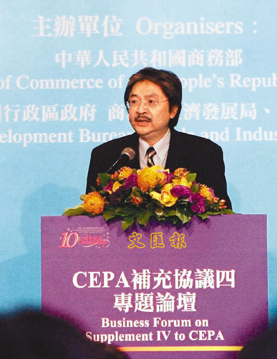 出席同一場合的財政司司長曾俊華表示,CEPA實施將近四年,對內地和香港經濟發展作出巨大貢獻。CEPA進一步鞏固香港在區域和國際市場的地位讓外國投資者也可以享有CEPA的優惠待遇。