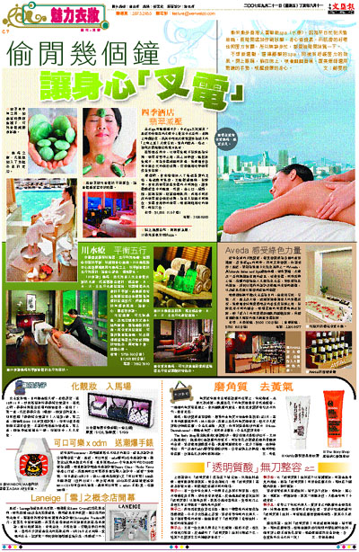 愈來愈多香港人喜歡做spa(水療),因為平日忙到天昏地暗,長時間處於作戰狀態,身心皆疲累,而肌膚的好壞也與壓力有關,所以無論多忙,都要抽時間放鬆一下。