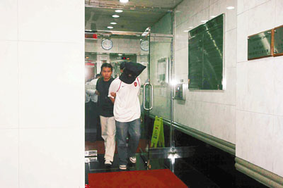 ■涉孌童癖的男子被探員拘捕帶署。本報記者鄺福強 攝