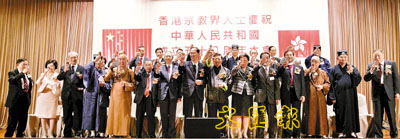■香港宗教界國慶酒會,曾德成、范徐麗泰及王如登等嘉賓主禮,會上一派喜氣洋洋。本報記者高仲明 攝