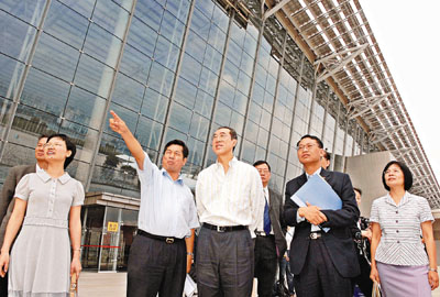唐英年今日上午在中國出口商品交易會副秘書長陳朝仁陪同下,參觀了廣州國際會展中心。他在過程中不斷「指手劃腳」,顯得興致勃勃,又多次問及會展中心的面積,關心其在擴建前後的面積是否可以足夠應付需要,以及每個展館的用途,又大談對歷屆商務部部長、廣交會主任的認識,並稱讚國營企業目前在內地亦十分市場化。