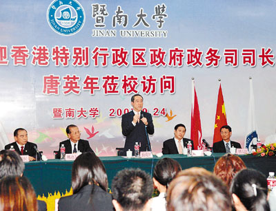■唐英年昨午探訪在廣州暨南大學就讀的香港學生並和他們舉行座談會。