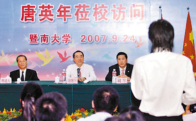 唐英年是次在暨大的座談會,是特區政府第一次有政府官員到訪暨南大學。俗語說「有朋自遠方來」,在內地留學的暨大港生均把握機會,向唐英年反映他們在穗遇到的「難題」。如有同學希望爭取香港的地鐵乘車的優惠可以伸延至在內地留學的港生,以及學歷互相認可問題等。唐唐除了耐心與其隨行的同事以筆記錄受關注的問題外,更藉此機會向他們介紹駐粵辦,承諾有關問題一有跟進的消息,就會透過學校與及駐粵辦的網址發放,努力「做好呢份工」。