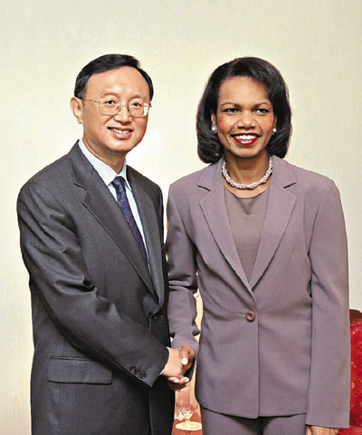 ■23日,中國外交部長楊潔篪在美國紐約華爾道夫飯店會見美國國務卿賴斯。新華社