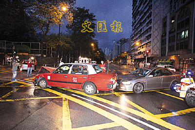 ■窩打老道三車相撞現場。