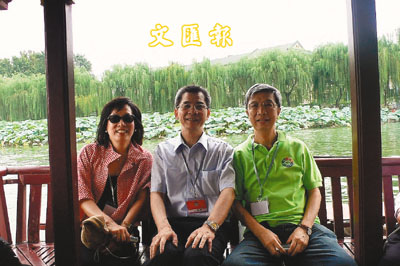 ■考察團成員劉宇新(中)、王國強(右)、王b鳴(左)在濟南市大明湖留影。