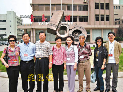 ■考察團成員黃英豪、張國良、李秀恆、王國強四對夫婦難得相遇,在青島啤酒博物館前合影。