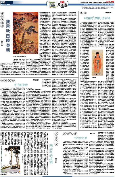 其實,文人的「悲秋」情懷,是與其處境、閱歷與心境相關的。王維《秋夜曲》是一首典型的宮怨詩:「桂魄初生秋露微,輕羅已薄未更衣。銀箏夜久慇勤弄,心怯空房不忍歸」,作者委婉訴說在秋露初生的深秋之夜,宮女穿著絲綢已嫌太薄卻不肯更衣,深夜了還在彈琴,為什麼呢?害怕空守閨房的孤寂呀!作者明寫宮女實寫自己,借女子的「心怯空房」狀自己的仕途不暢,讀來令人「慼慼然」矣!