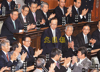 另外,反對派早前在過半數控制的參議院中,推舉65歲的民主黨總裁小澤一郎為首相。但根據日本國會憲章,眾議院有權推翻參議院的決定。各大在野黨昨紛表不滿,要求「順應民意」解散眾院提前舉行大選。