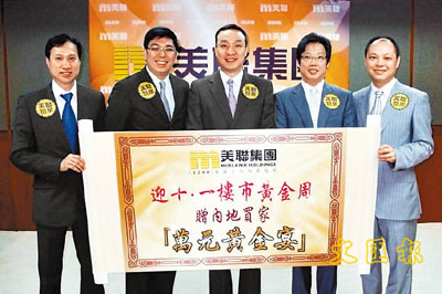 美聯執行董事陳坤興表示,集團為了鼓勵前線員工搶佔黃金周樓市旺潮,特別向於國慶黃金周期內,首10名促成內地客人購入本地物業之員工,送出雙人「黃金吉品鮑魚魚翅宴」,總值超逾萬元,實行內外雙線力谷黃金周銷量。
