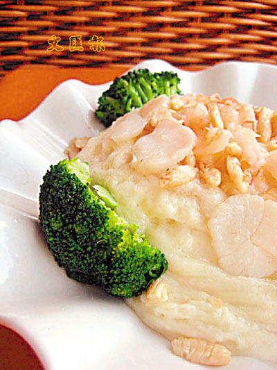 大良炒鮮奶大家可能吃得多,但這道以豆漿為主角的「生炒鮮豆漿」又有否吃過?師傅以每天自製的鮮豆漿,用適中的火力和熟練的技巧,將豆漿炒好後加上欖仁、鮮蝦和帶子。此菜清香撲鼻,每口都散發著陣陣的豆味,香滑濃郁,清新美味。